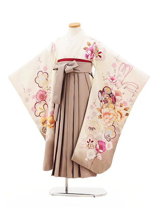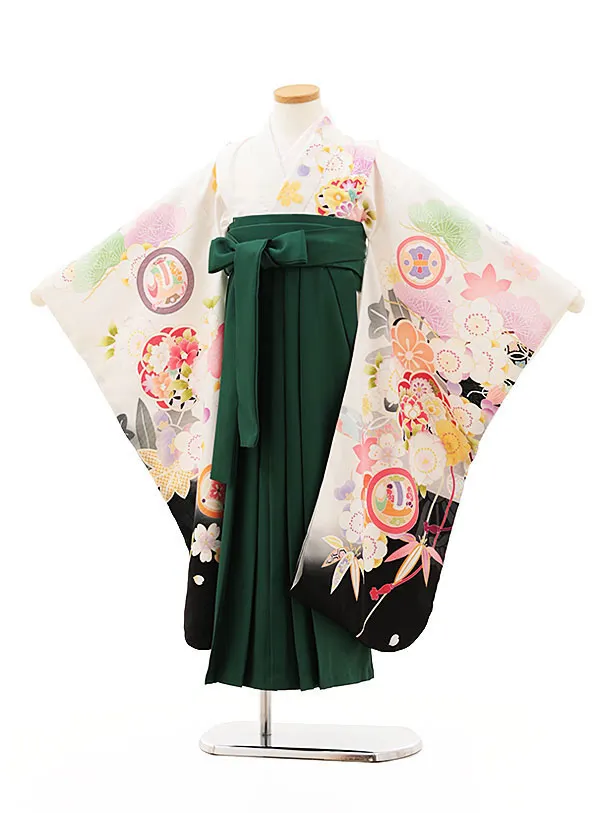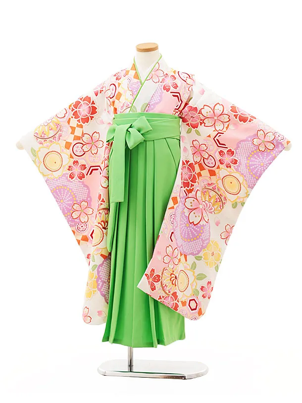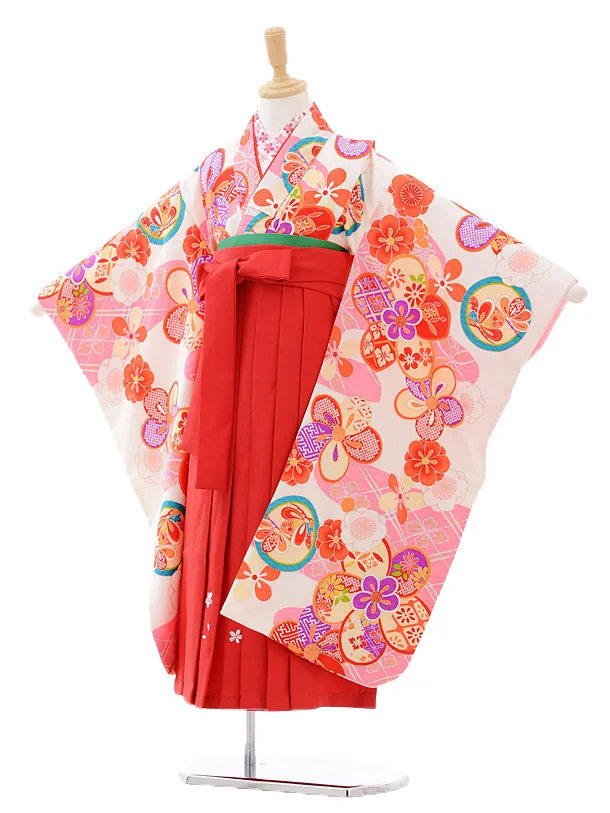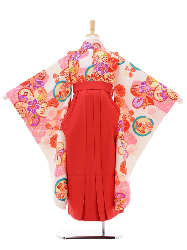 女児袴(7女)7274 白地にピンク雲取梅×赤袴