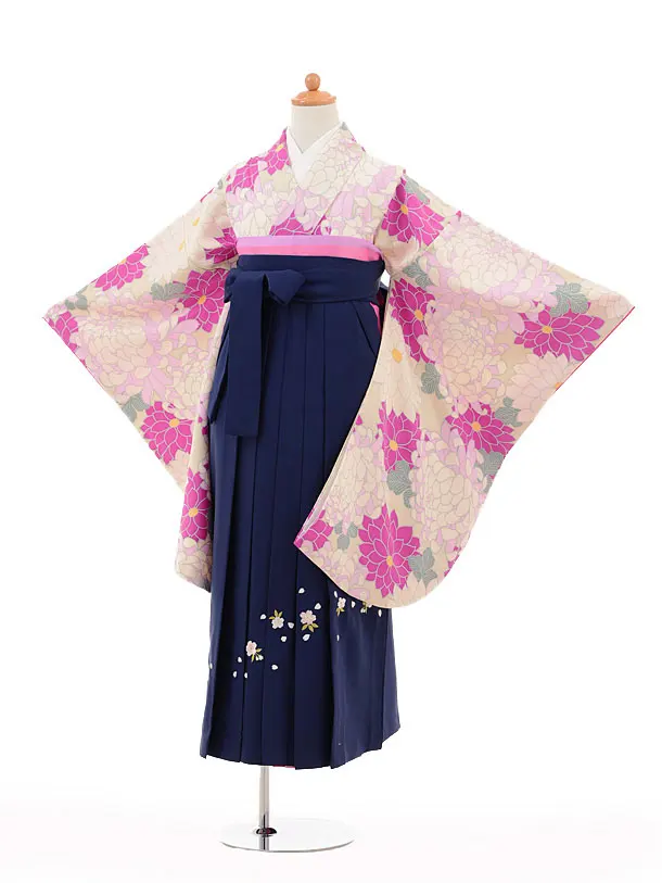 小学生 卒業式 袴 女児9139 ベージュピンク菊×紺