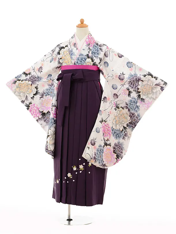 小学生卒業式袴レンタル(女の子)9180 白地牡丹×パープル
