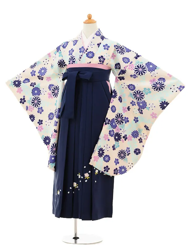 小学生卒業式袴レンタル(女の子)9187 白地菊藤×紺袴