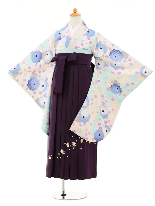 小学生卒業式袴レンタル(女の子)9208 白地水色矢絣桜