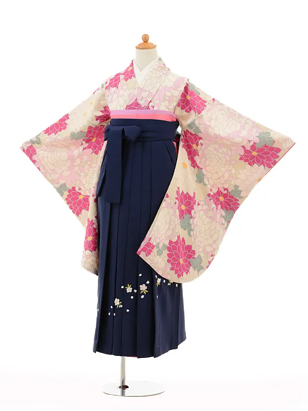 小学生卒業式袴レンタル(女の子)9228 ベージュピンク菊