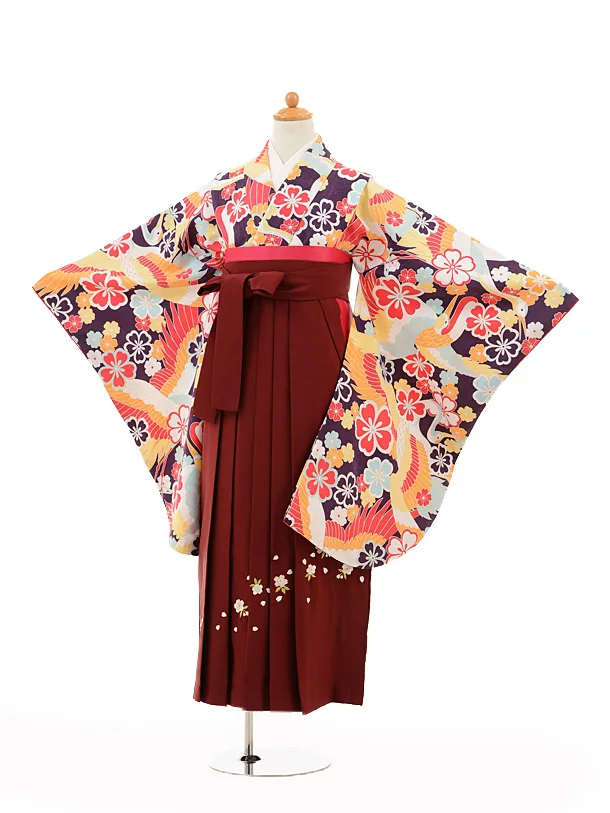 小学生卒業式袴レンタル(女の子)9236 梅×エンジ袴