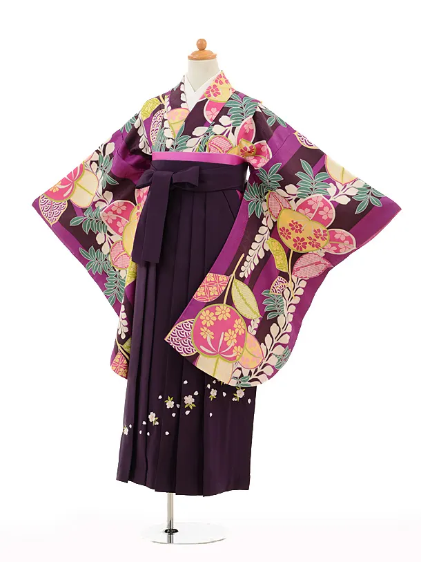 小学生卒業式袴レンタル(女の子)9238 紫地橘×パープル袴