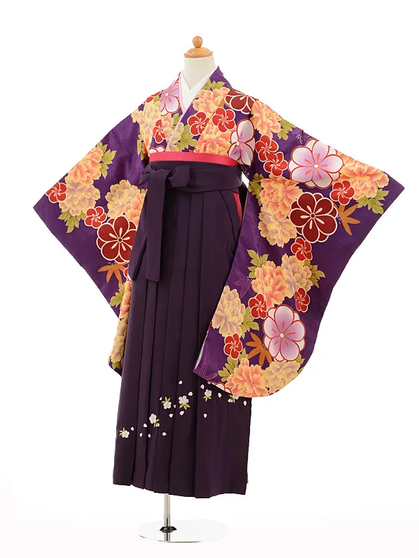 小学生卒業式袴レンタル(女の子)9248 紫地ぼたん×パープ