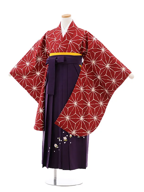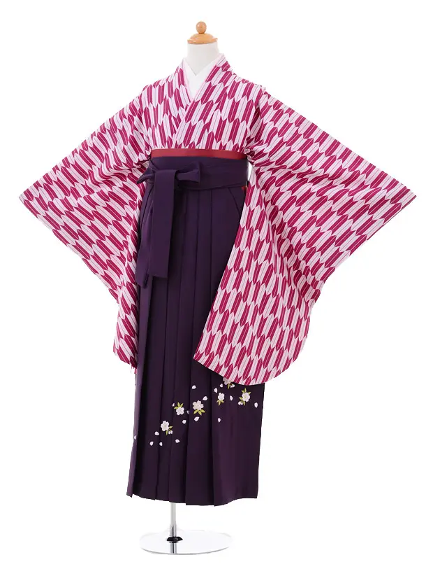 小学生卒業式袴レンタル(女の子)9268 赤紫矢絣×パープル