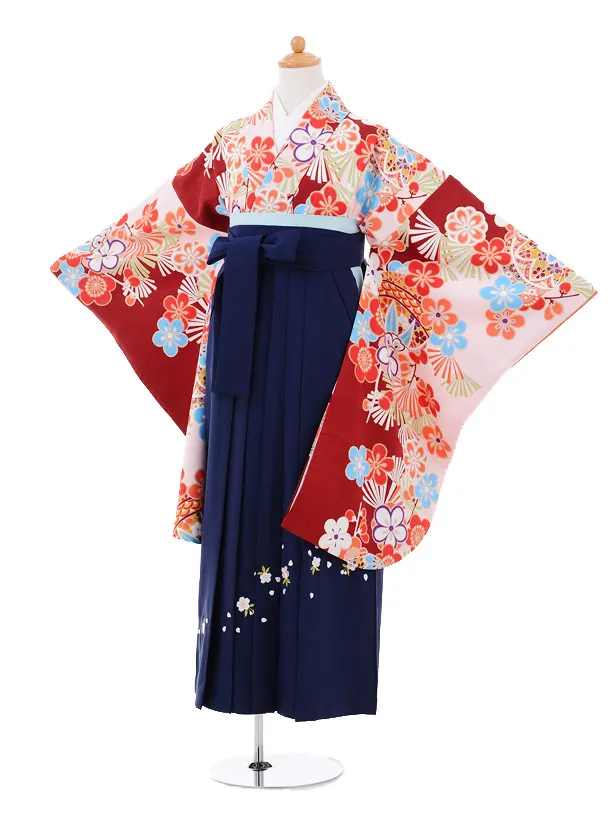 小学生卒業式袴レンタル(女の子)9278 薄ピンク小豆色に梅