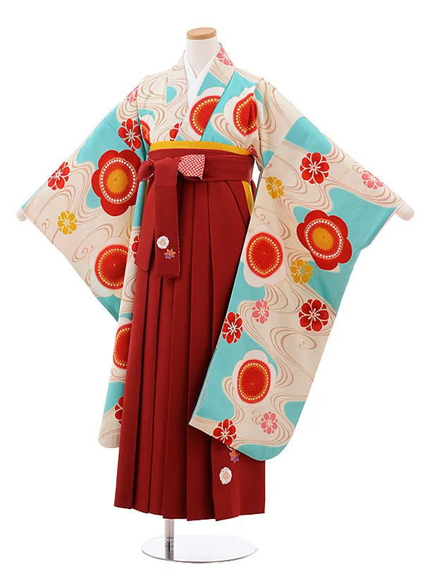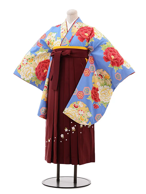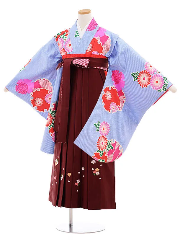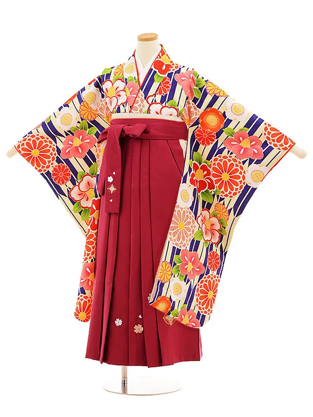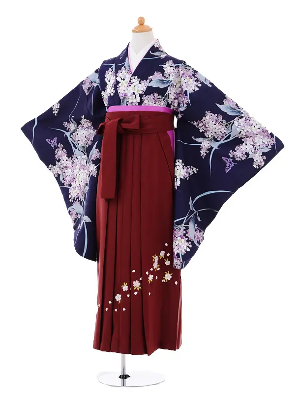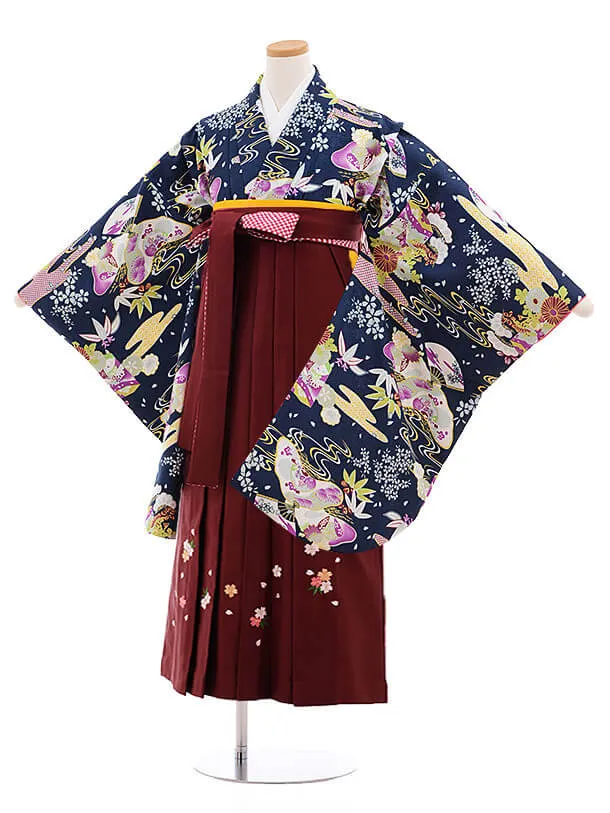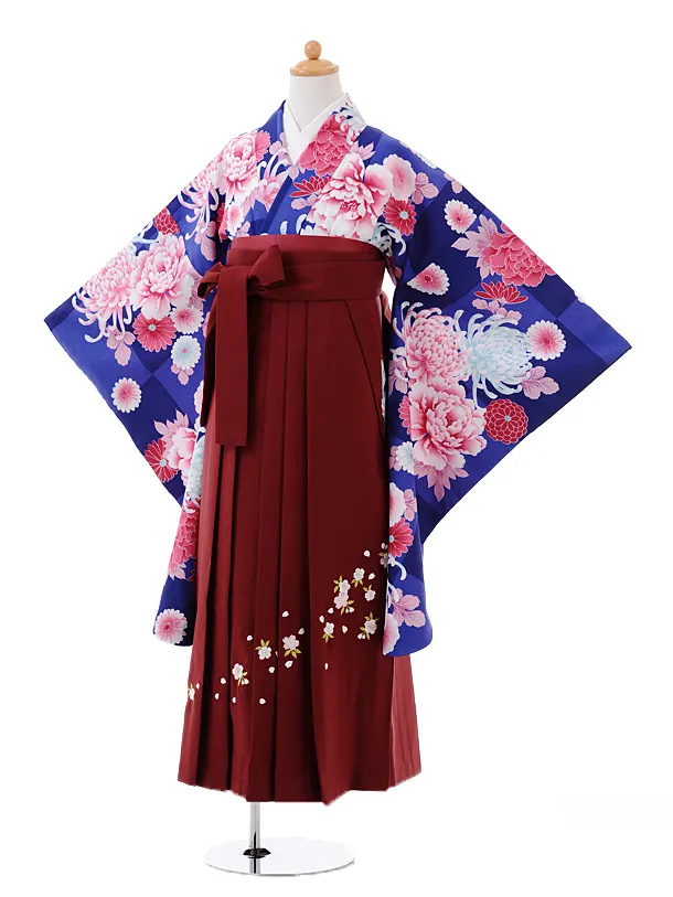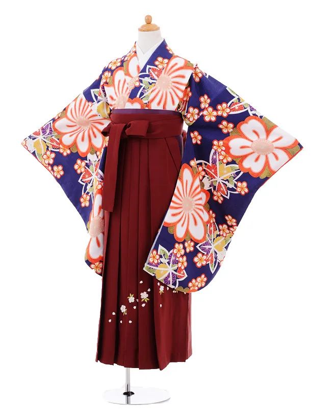小学生卒業式袴レンタル(女の子)9280 紺地大花×エンジ袴