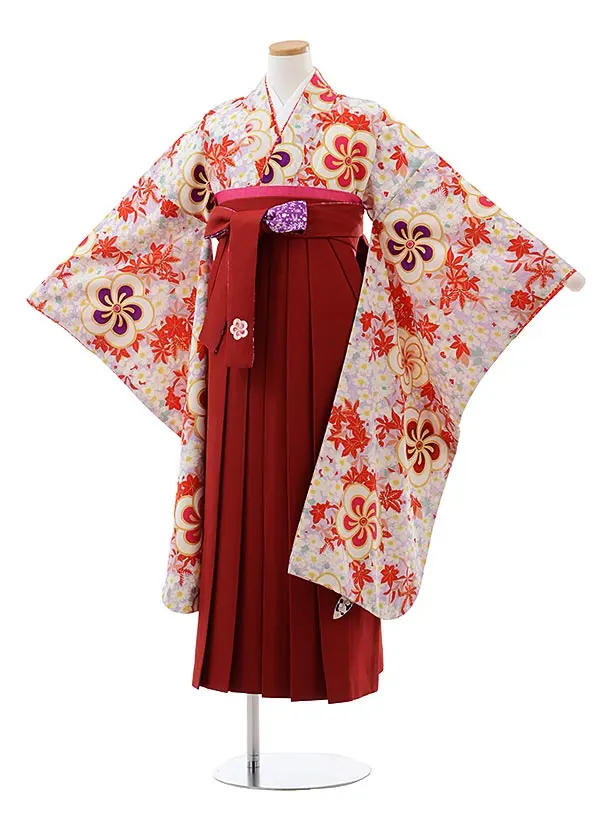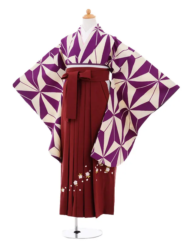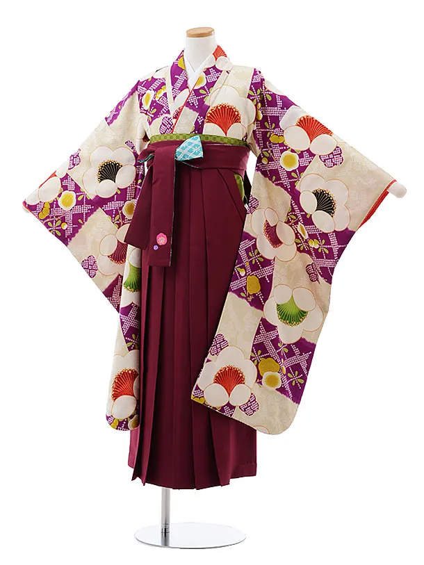 小学生卒業式袴レンタル(女の子)9281 紫クリーム矢絣×エンジ