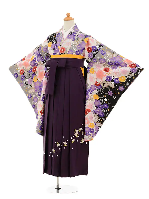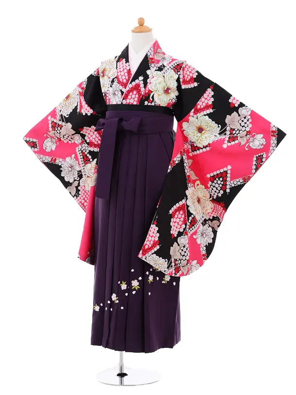 小学生 卒業式 袴レンタル(女の子)9285 黒ピンク洋花