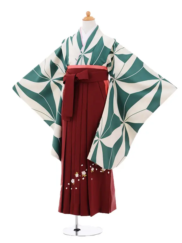 小学生卒業式袴レンタル(女の子)9299 グリーン変わり麻の葉