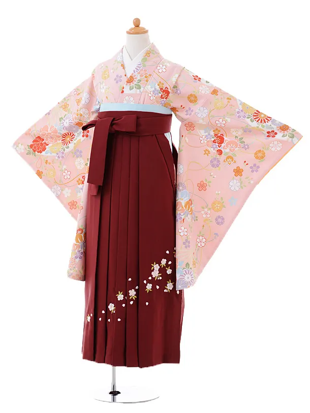 小学生卒業式袴レンタル(女の子)9302 ピンク矢絣×エンジ袴