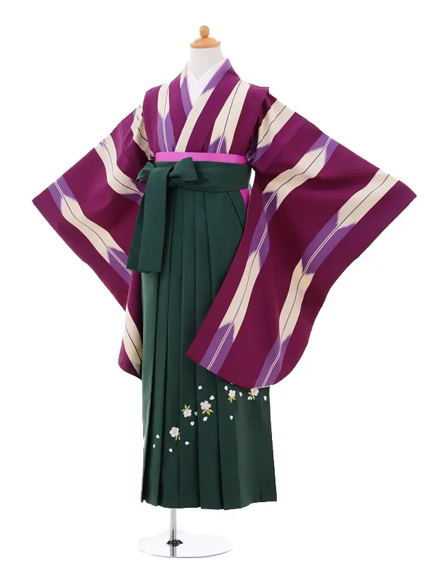 小学生卒業式袴レンタル(女の子)9312 紫矢絣×グリーン袴