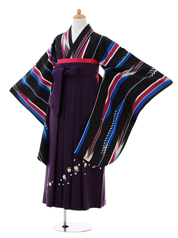 小学生 卒業式袴レンタル(女の子)9381黒地変わりストライプ