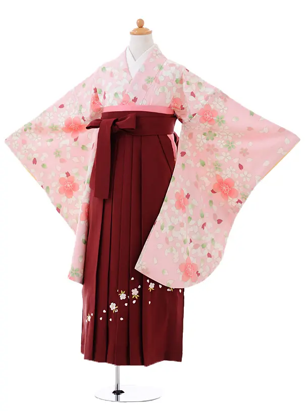 小学生卒業式袴レンタル(女の子)9394ピンク地舞桜×エンジ袴