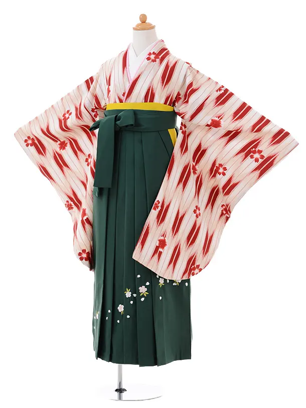 小学生卒業式袴レンタル(女の子)9404白地赤矢絣×緑袴
