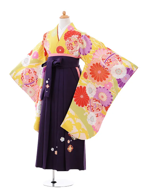 小学生 卒業式袴レンタル(女の子)9416黄色菊に花くす玉