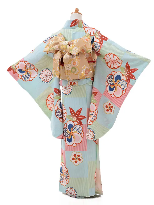 ジュニア着物jh9425水色 菊ねじり梅
