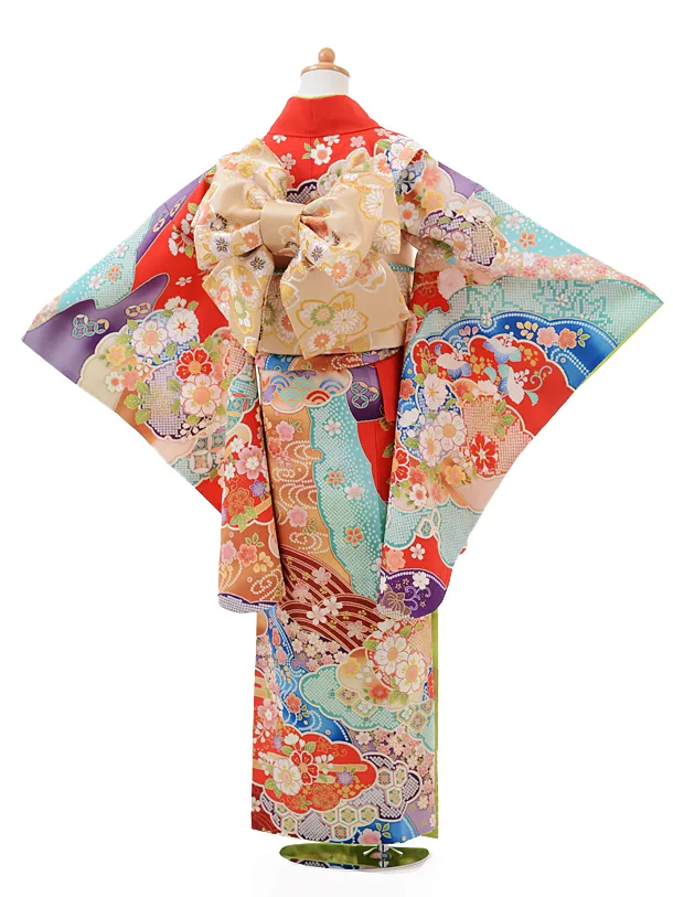 ジュニア着物jh9430赤地 雲取花