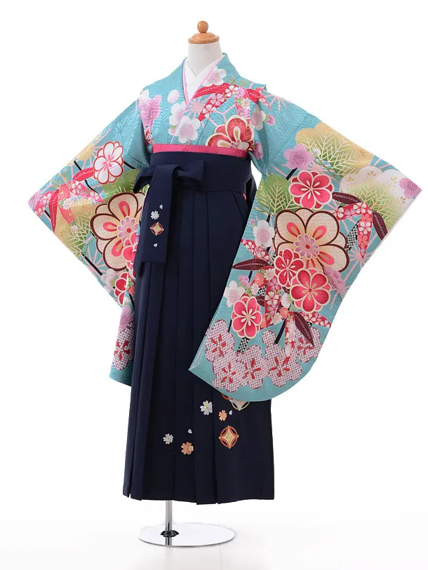 小学生卒業式袴レンタル(女の子)9431水色松竹梅×紺袴