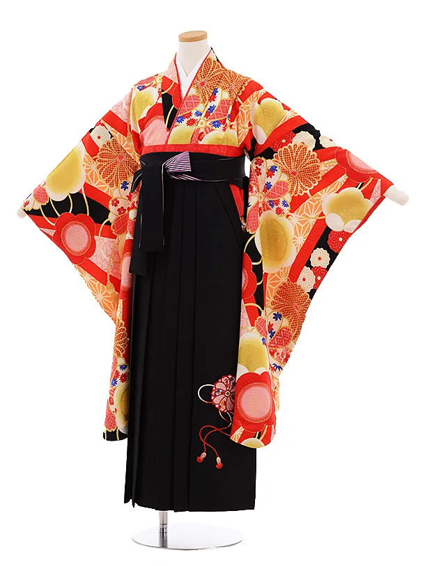 小学生卒業式袴レンタル9483九重黒地古典×黒袴
