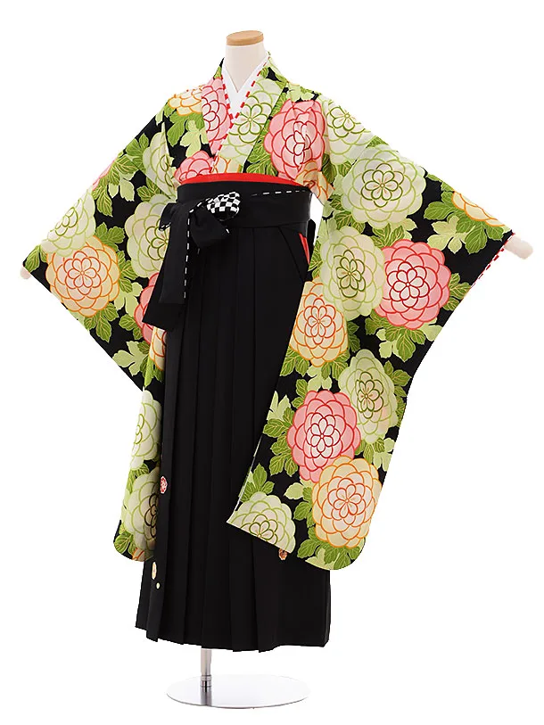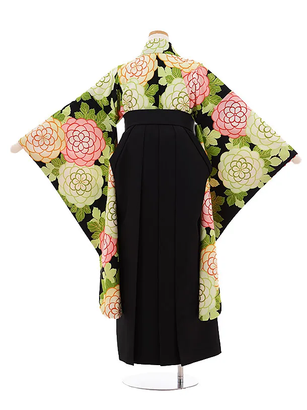 小学生卒業式袴レンタル9490紅一点黒地花×黒袴