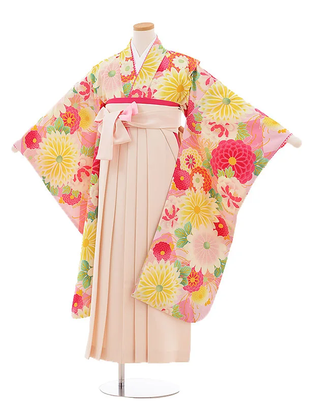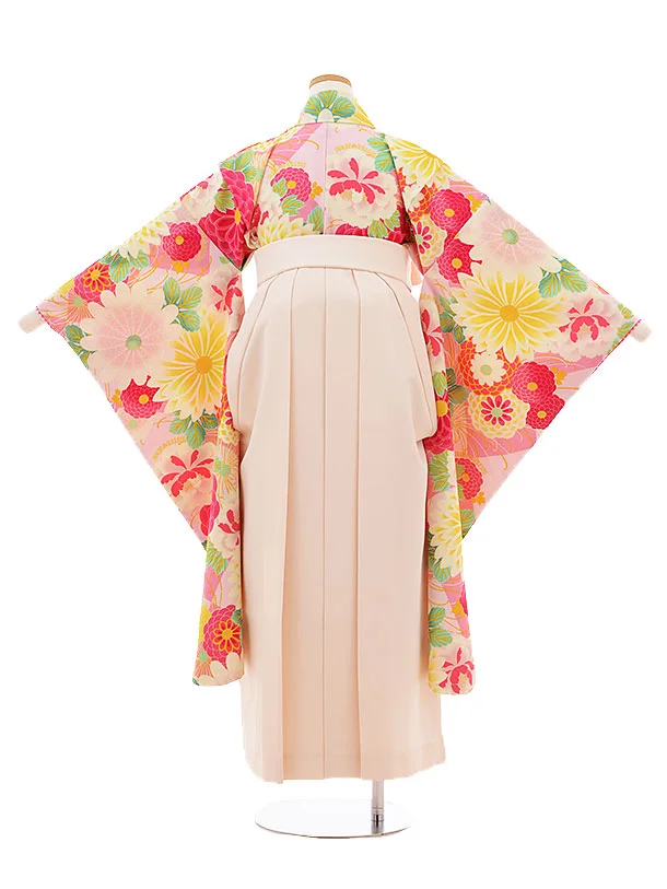 小学生卒業式袴レンタル9495SISTERJENNIピンク花×クリーム色袴