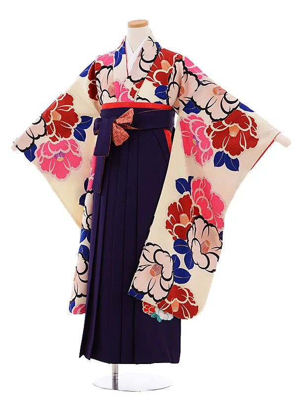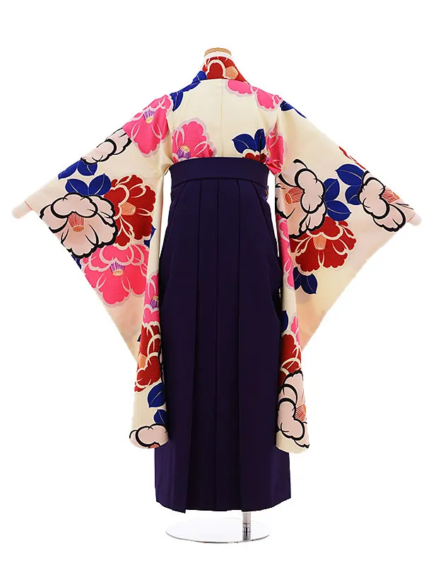 小学生卒業式袴レンタル9498九重クリーム地椿×パープル袴