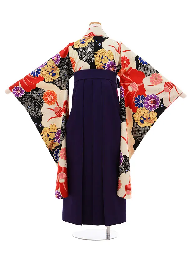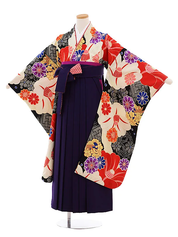 小学生卒業式袴9500瑞城さくら×JAPANSTYLE黒地椿×パープル袴