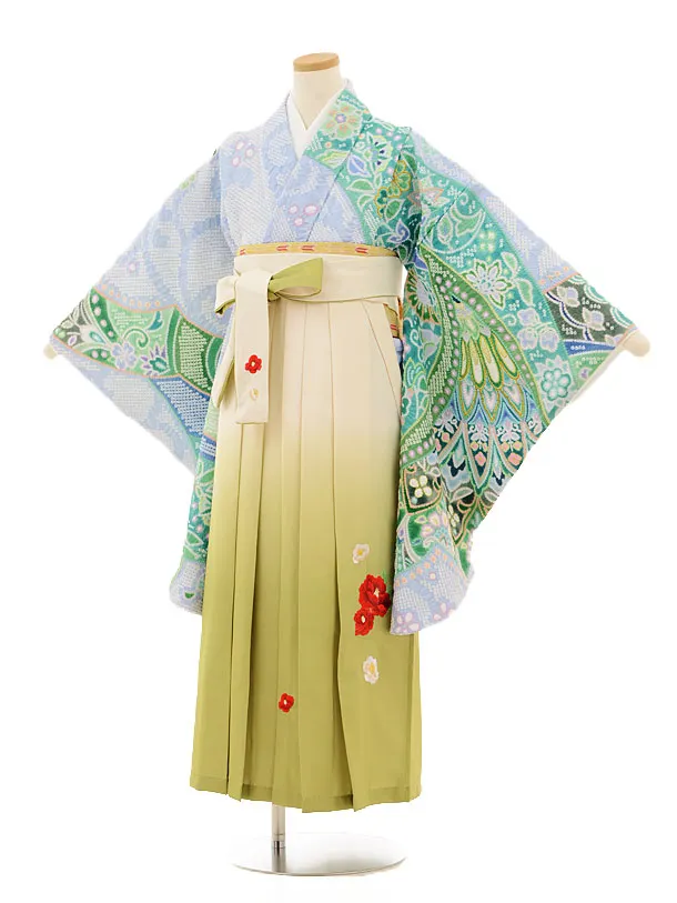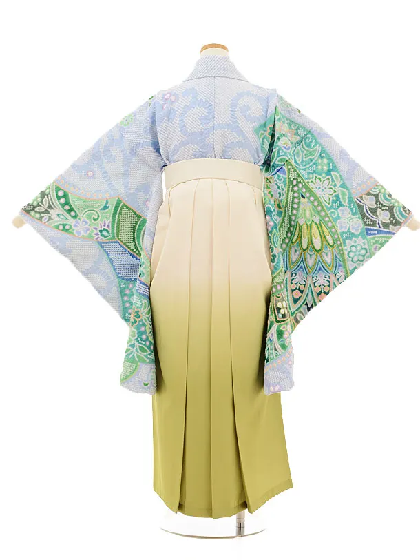 小学生卒業式袴レンタル(女の子)9507 水色絞り×クリームぼかし袴