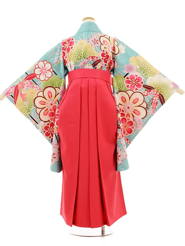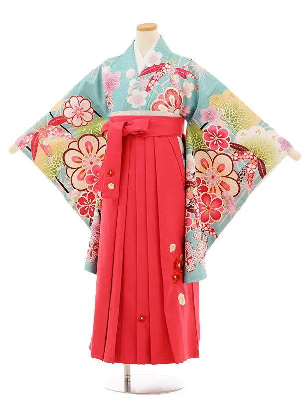 小学生卒業式袴レンタル(女の子)9508 水色松竹梅×ピンク袴