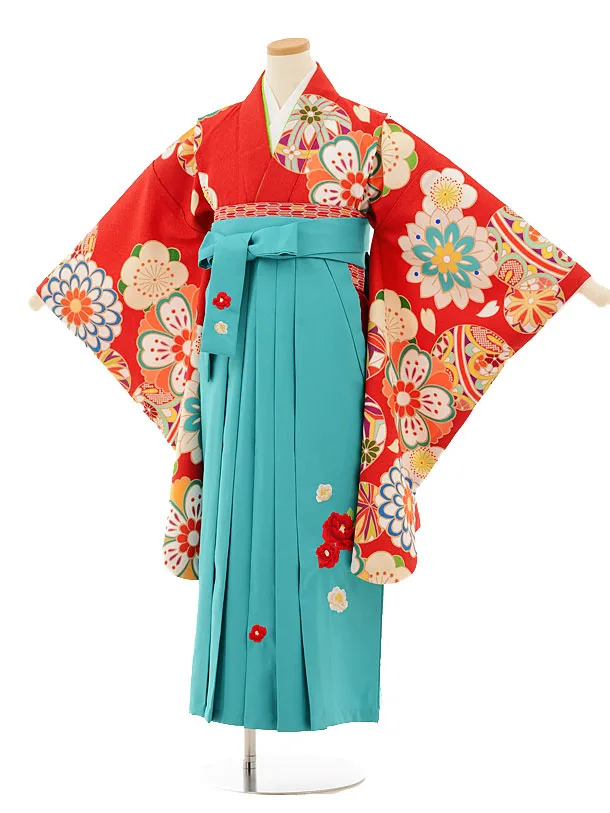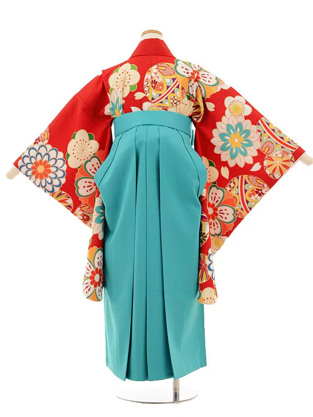 小学生卒業式袴レンタル(女の子)9510 赤茶古典×ターコイズ袴
