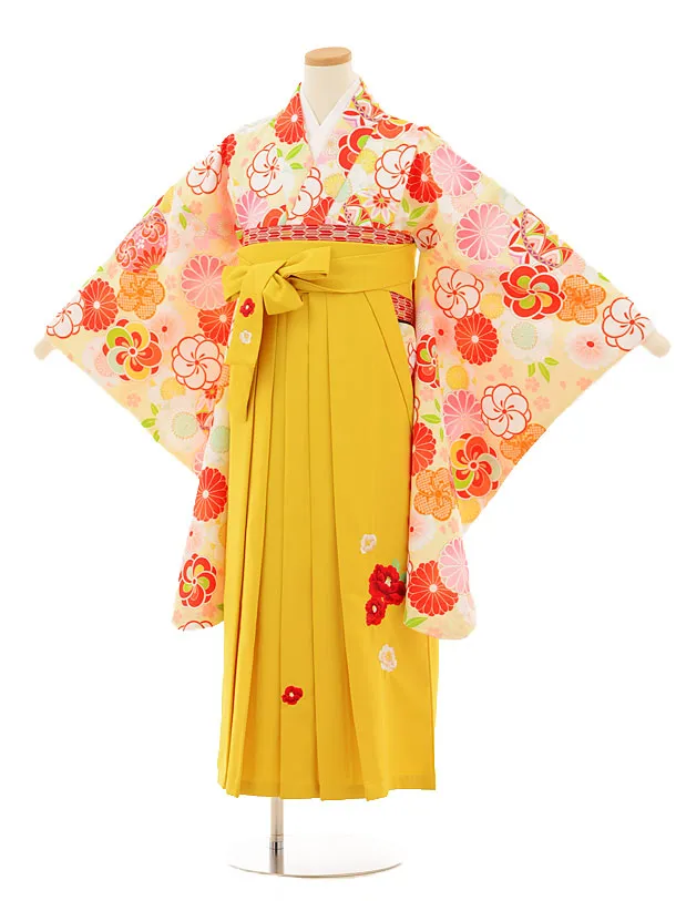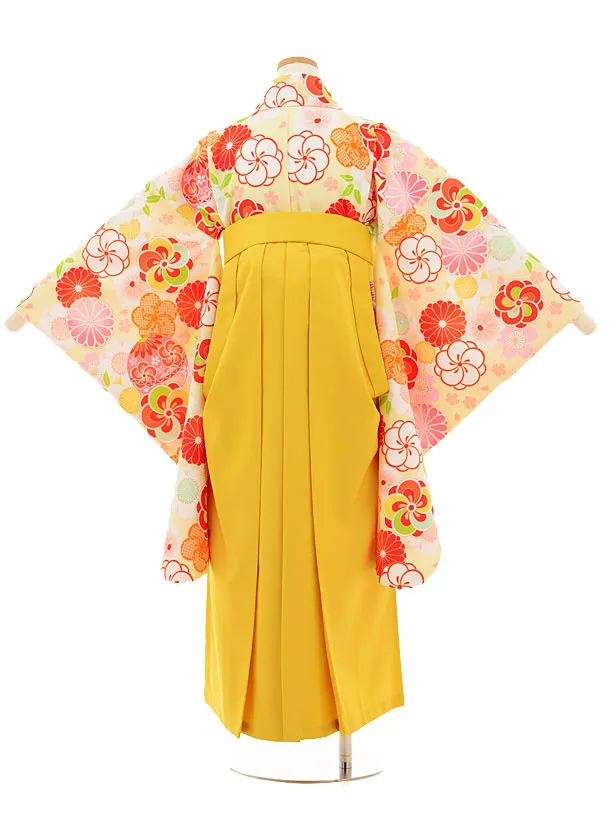 小学生卒業式袴レンタル(女の子)9516 薄イエロー古典×イエロー袴