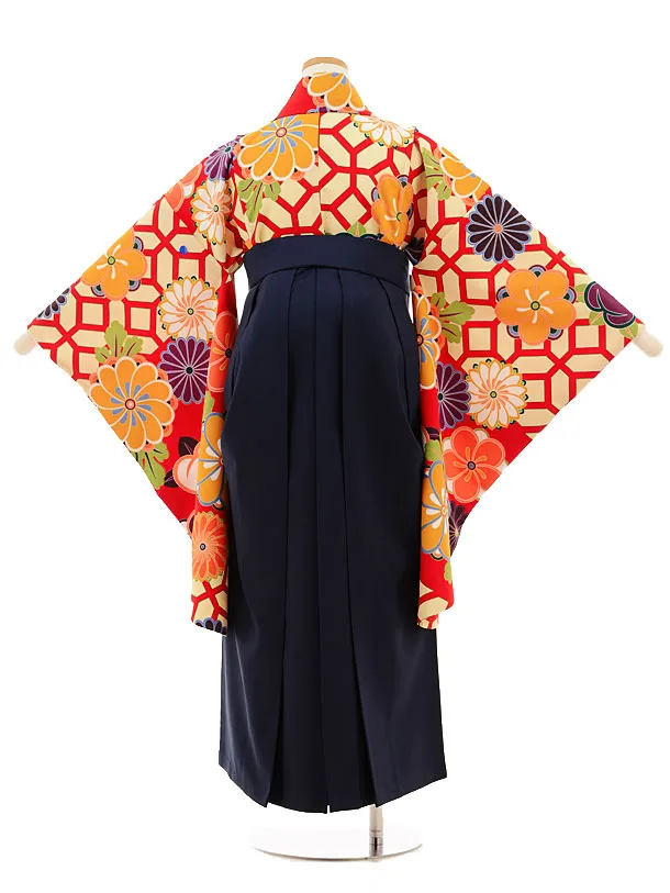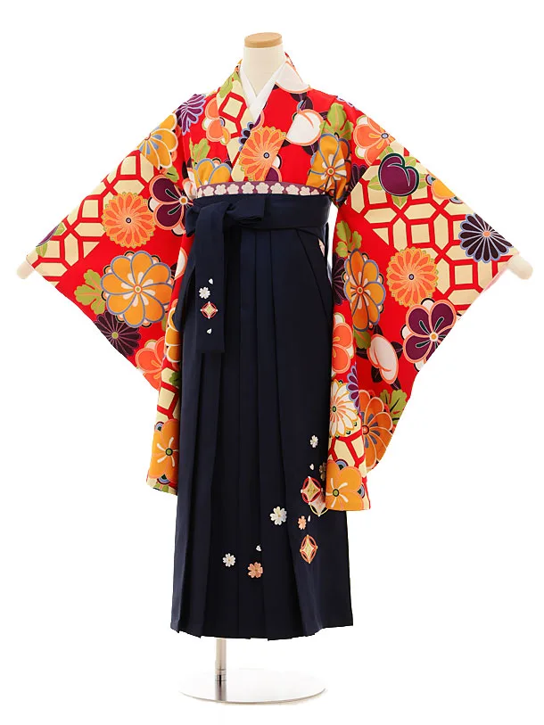 小学生 卒業式 袴レンタル(女の子)9524 赤地菊梅×紺袴