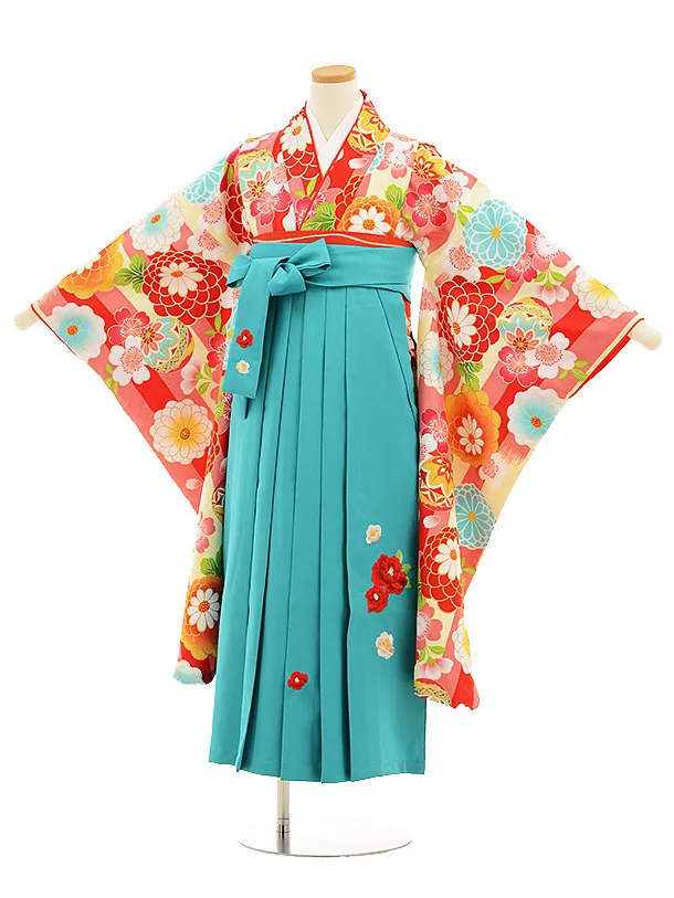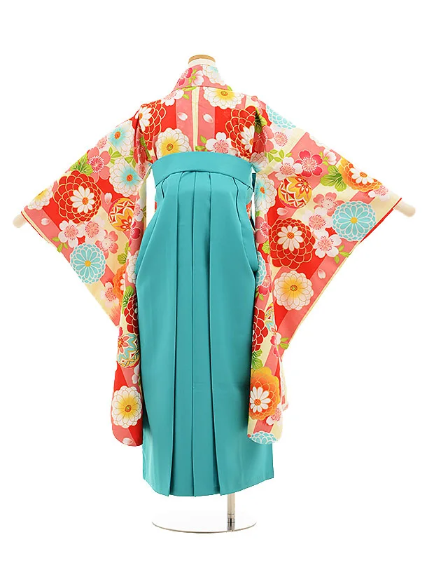 小学生卒業式袴レンタル(女の子)9534小町ピンククリーム縞×ターコイズ袴