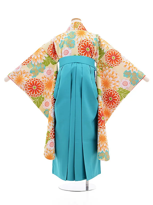 小学生卒業式袴レンタル(女の子)9544小町kidsクリーム地菊×ターコイズ袴