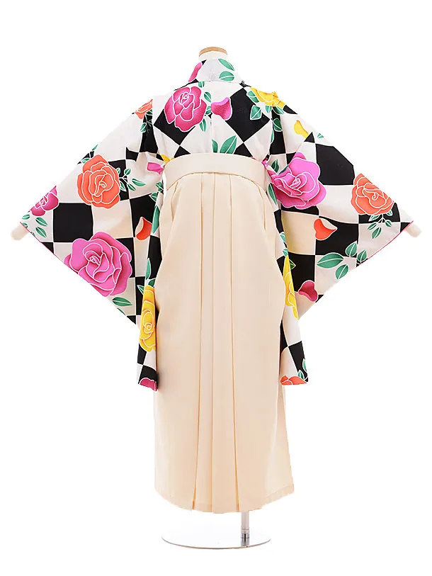 小学生卒業式袴レンタル(女の子)9547ひさかたろまん黒バラ×クリーム袴
