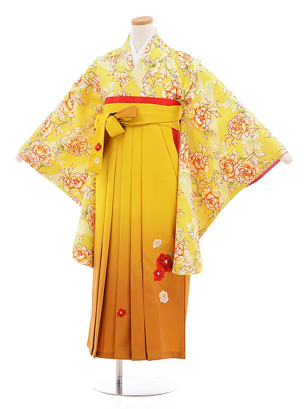 小学生卒業式袴レンタル(女の子)9563ひさかたろまん黄色ぼたん×からし色袴