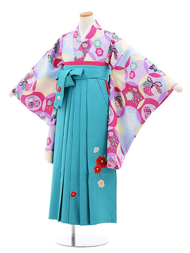 小学生卒業式袴レンタル(女の子)9576ひさかたろまんすみれ色×ターコイズ袴