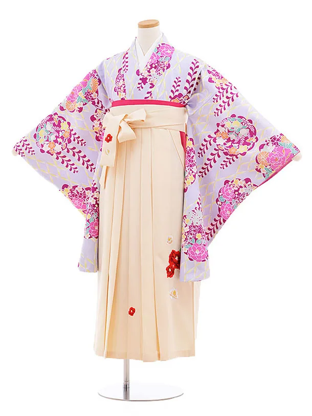 小学生卒業式袴レンタル(女の子)9581ひさかたろまんすみれ色×クリーム袴