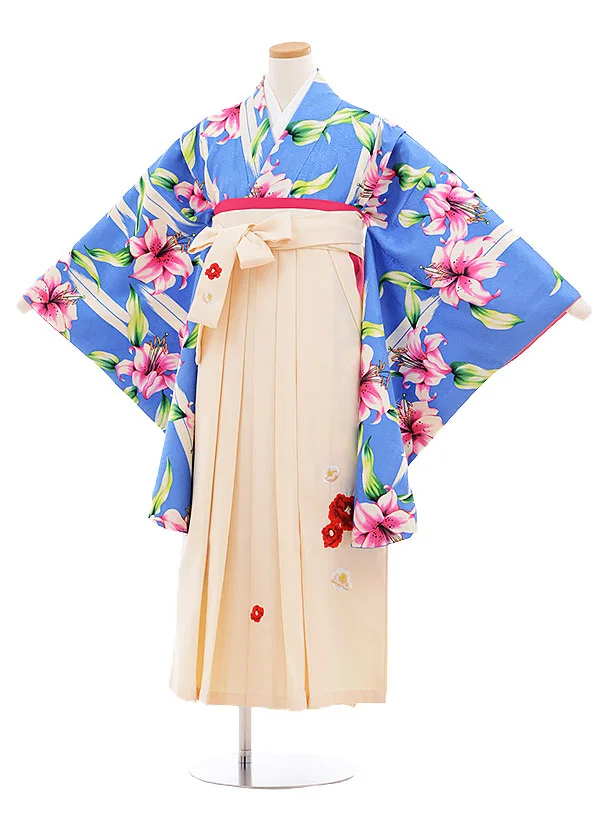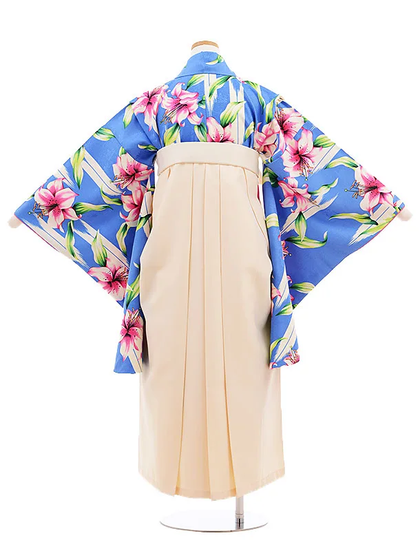 小学生 卒業式 袴レンタル(女の子)9583ブルーゆり×クリーム袴