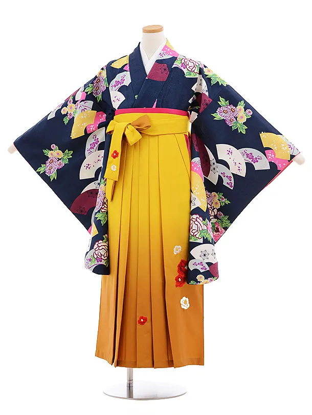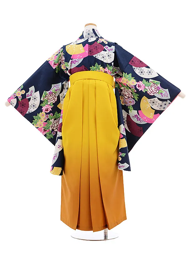 小学生卒業式袴レンタル(女の子)9587ひさかたろまん紺緑扇花×からし色袴
