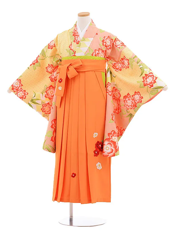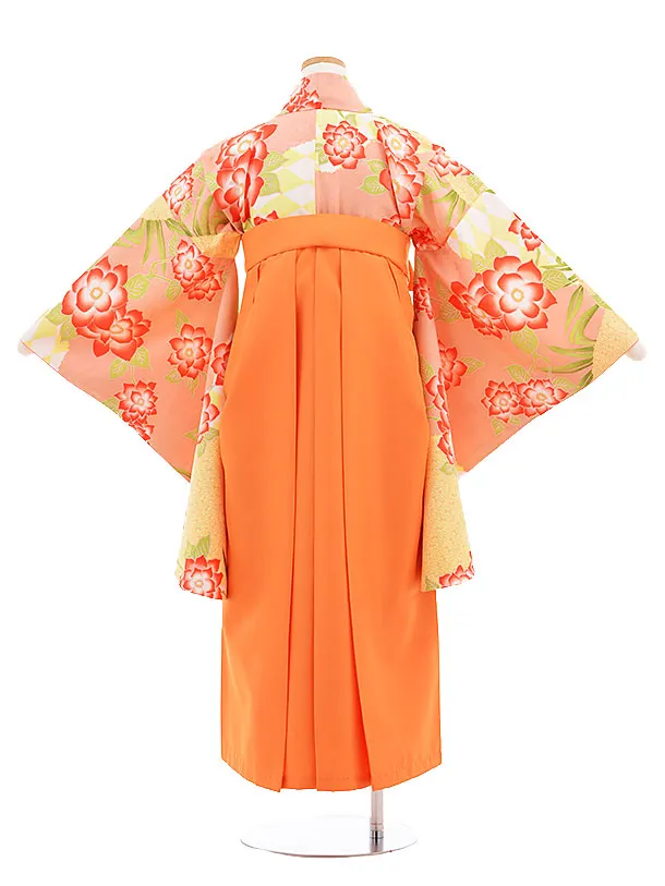 小学生卒業式袴レンタル(女の子)9593サーモンピンク花×オレンジ袴