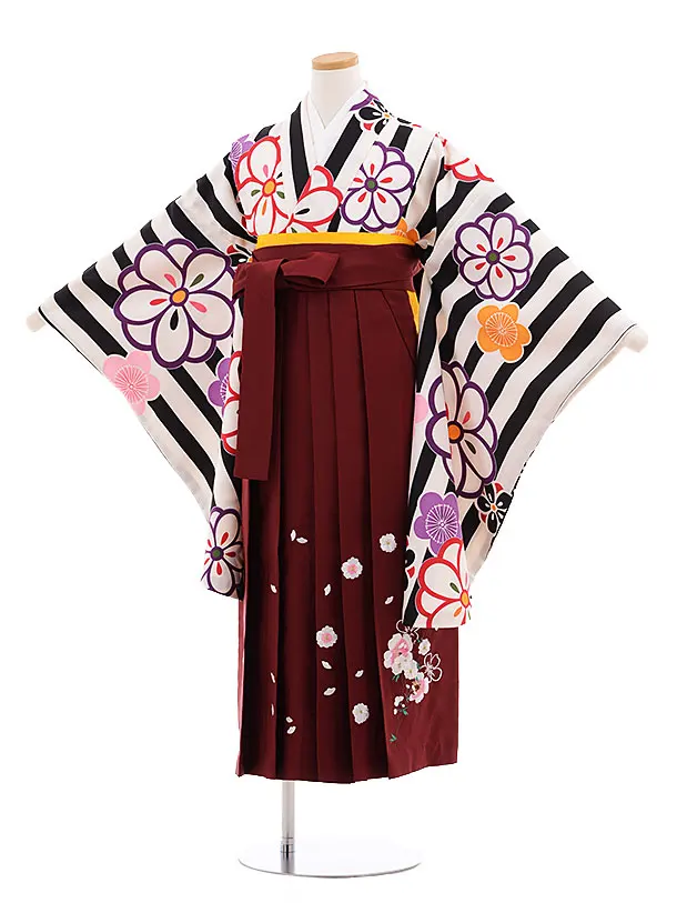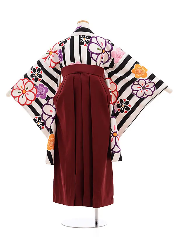 小学生卒業式袴レンタル(女の子)9598黒ストライプ梅×エンジ袴