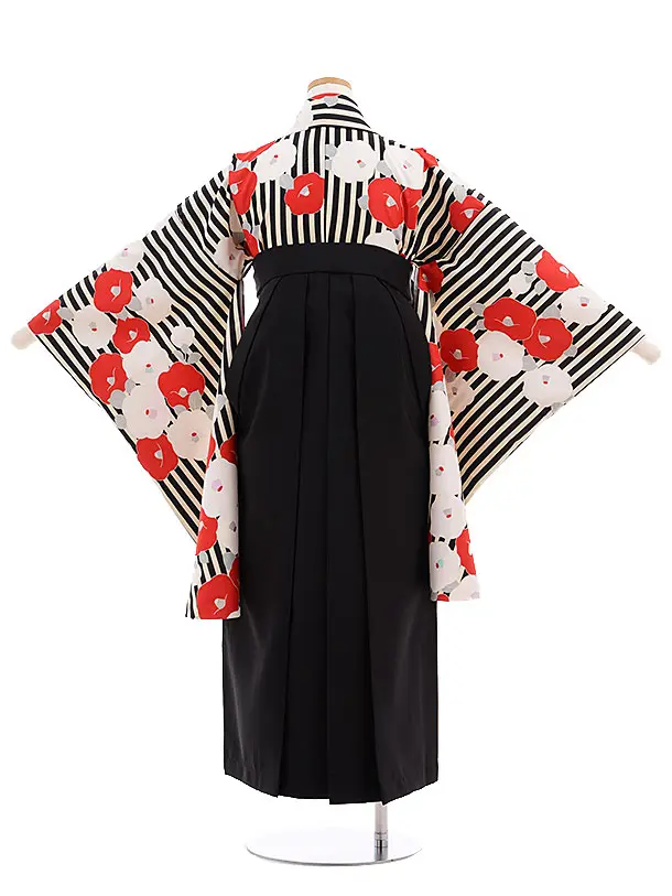 小学生 卒業式 袴レンタル(女の子)9620黒ストライプ椿×黒袴