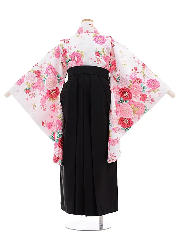 小学校卒業式袴レンタル(女の子)9644白地ピンクバラ×黒袴