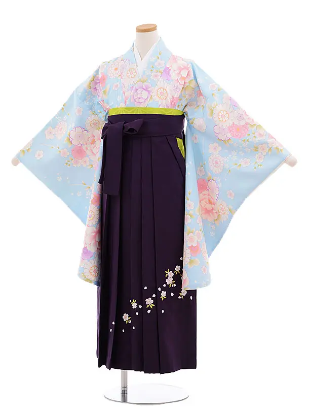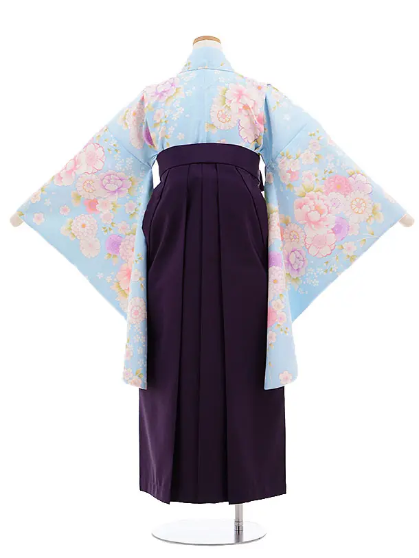 小学校卒業式袴レンタル(女の子)9660水色花づくし×パープル袴