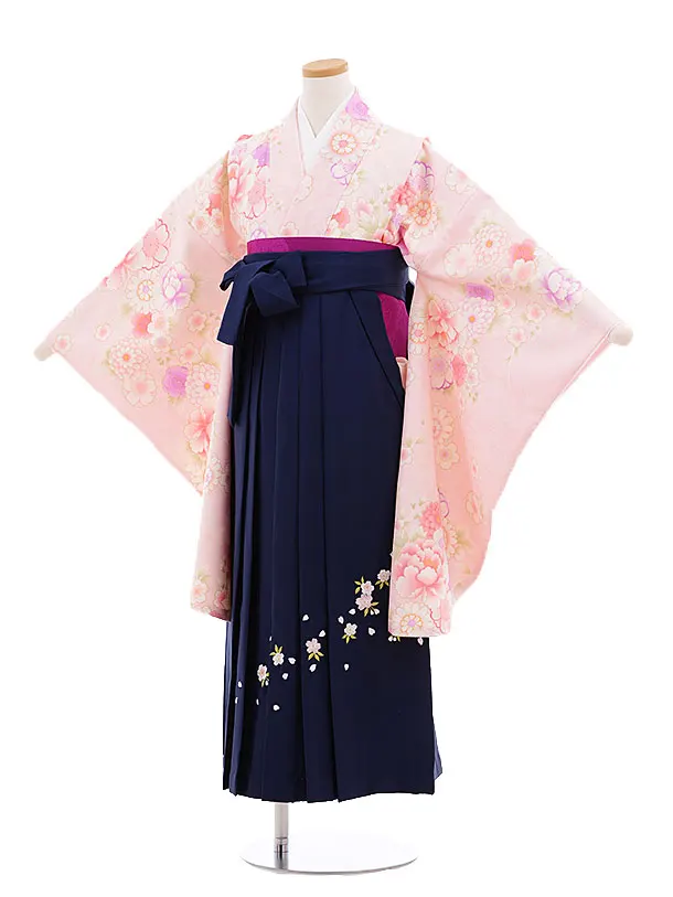 小学校卒業式袴レンタル(女の子)9669ピンク花づくし×紺袴