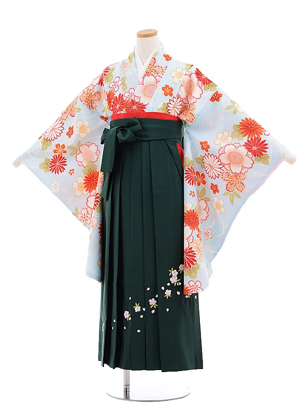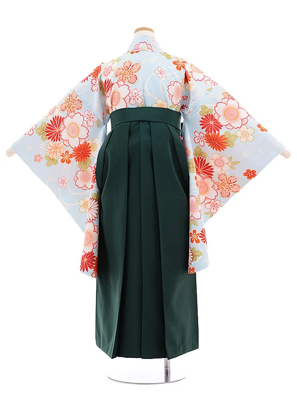 小学校卒業式袴レンタル(女の子)9673水色桜菊×グリーン袴