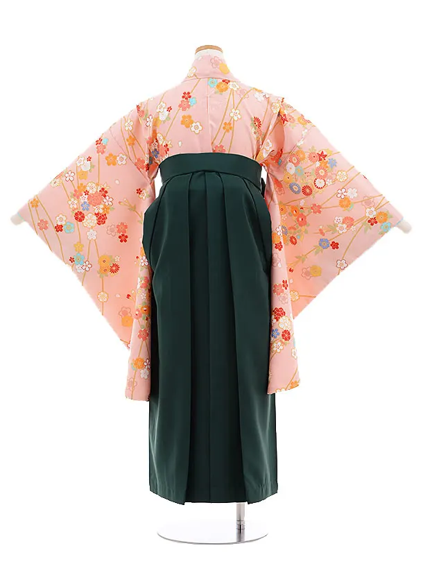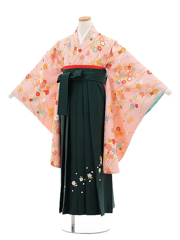 小学校卒業式袴レンタル(女の子)9680ピンク枝に花×グリーン袴